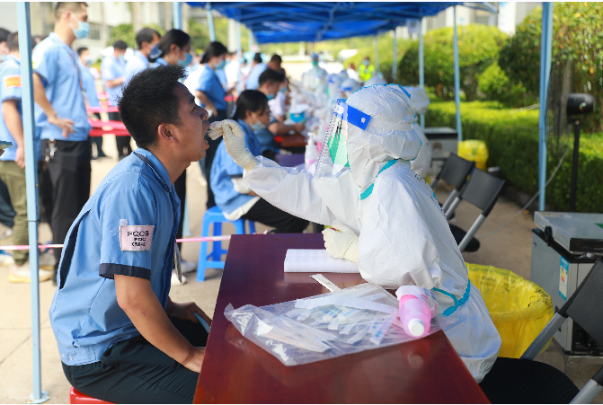 公司积极响应市委市政府号召,严格贯彻落实各项疫情防控指令,6月22日上午,在惠阳区淡水街道办社区服务中心统一组织下,公司全体在职职工、驻厂进行核酸采样。经过近10个小时的连续奋战,最终完成8700多人的核酸采样,当天送到广州检测后,结果显示全为阴性。